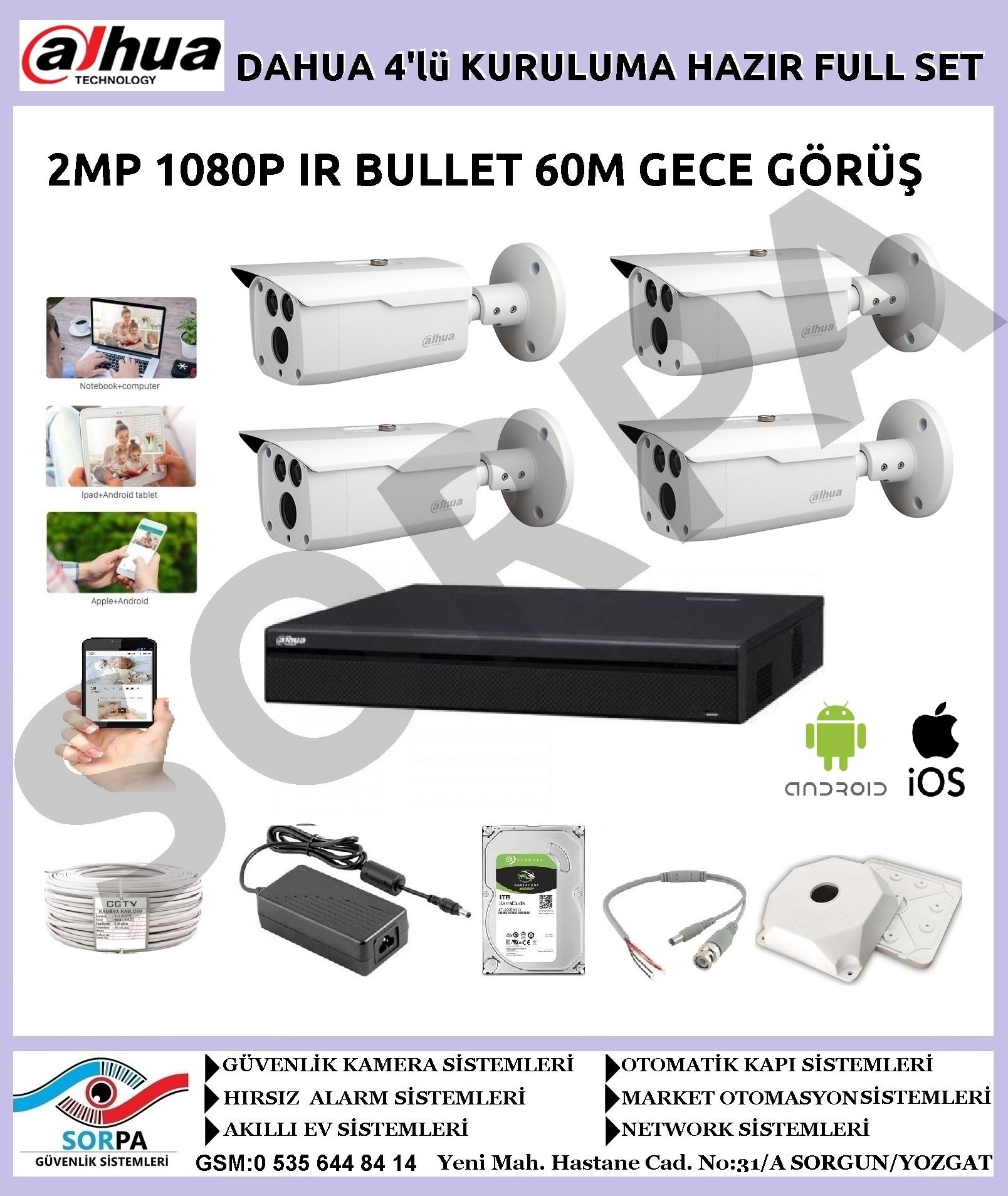 ÜRÜNLERİMİZ SIFIR 2 YIL DAHUA TÜRKİYE YETKİLİ SERVİS GARANTİLİDİR. YOZGAT GENELİ MONTAJ HİZMETİMİZ VARDIR.